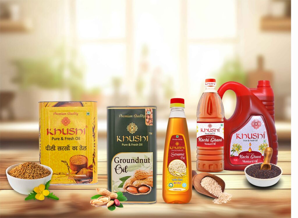 Khushi Oils is a trusted name in the edible oil industry, known for its commitment to purity, nutrition, and customer satisfaction. With years of expertise and advanced cold-press technology, we ensure that every drop of oil retains its natural aroma, taste, and health benefits. We believe that food is not just about taste—it’s about wellness, culture, and family. That’s why our oils are free from chemicals, preservatives, and artificial additives.